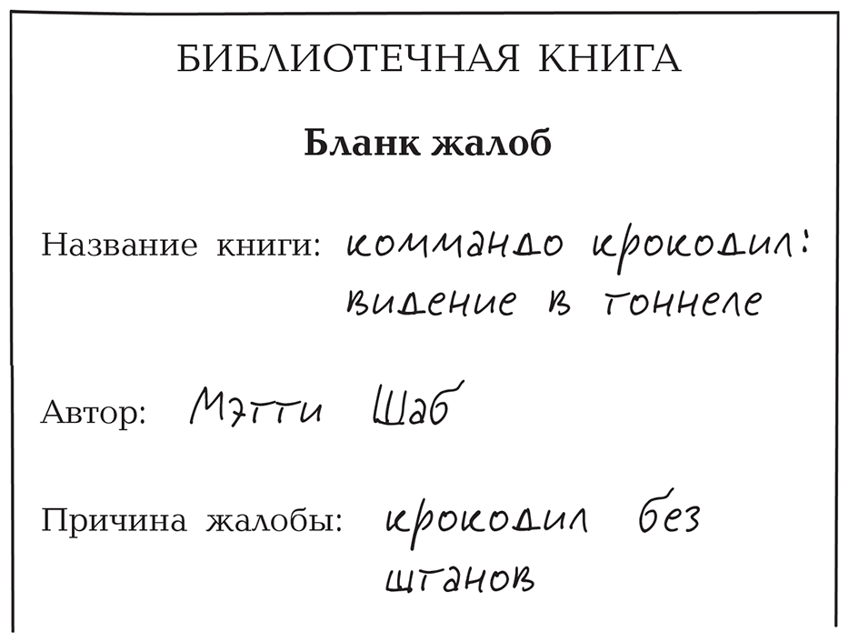 Но, видимо, какому-то родителю не понравилось, как нарисован Коммандо Крокодил, и он решил написать жалобу на эту книгу.