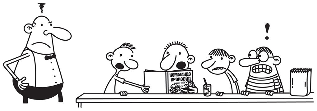 Самыми популярными стали книжки из серии «Коммандо Крокодил». Они никогда не залёживались на полках, сколько бы миз Мейзи их ни покупала. Если ты хотел взять одну из этих книжек, приходилось записываться заранее, а список желающих был километровый.