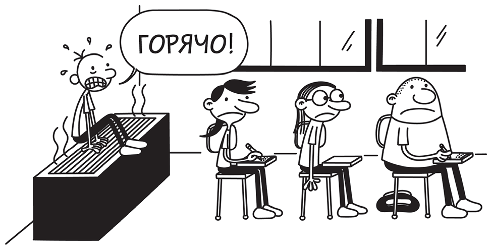 В результате ребята вроде меня, которые обычно сидят в последнем ряду, оказались на батарее. Эта штука такая горячая, что, если сидеть на ней долго, начинают подгорать булки. Приходится переваливаться с одной на другую, чтобы они могли остыть.