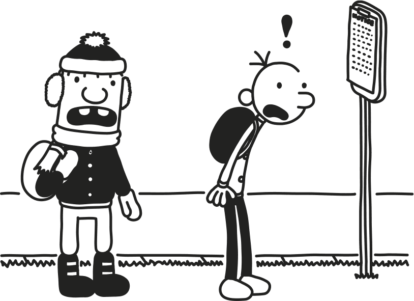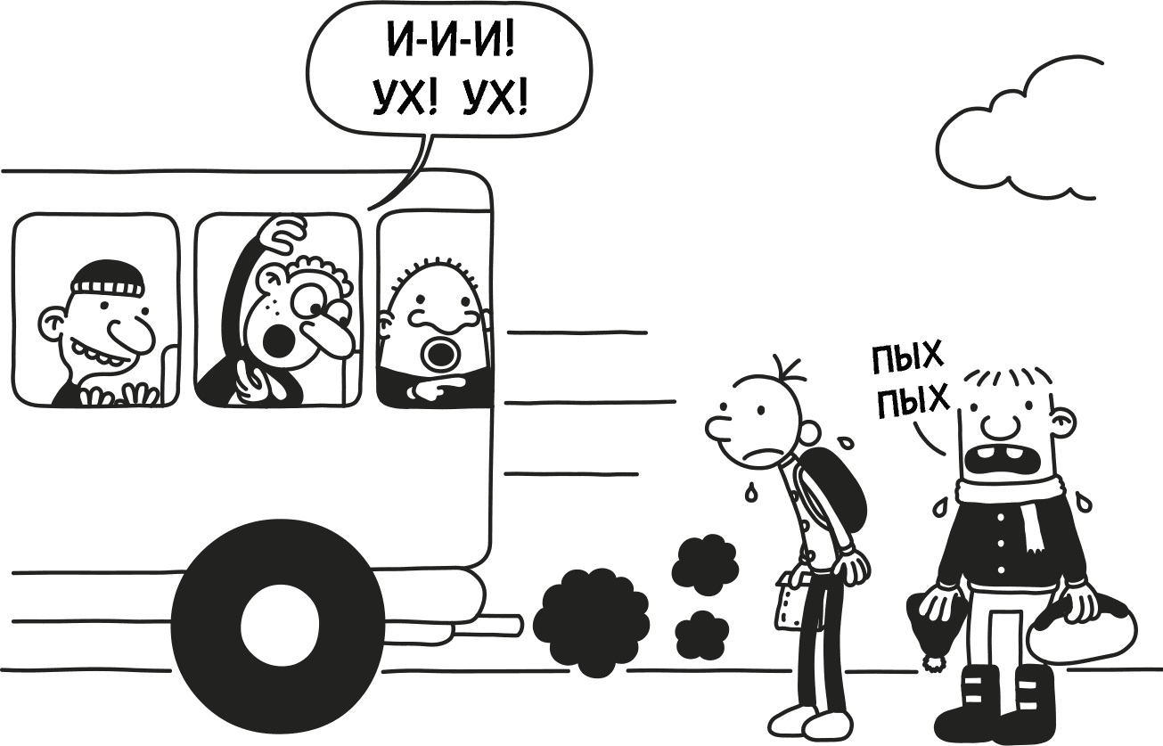 Когда мы с Роули притопали сегодня на остановку школьного автобуса, нас ждал отвратный сюрприз. На щитке висела бумажка, извещавшая, что «маршрут школьного автобуса» с сегодняшнего дня «изменён». Это значило, что до школы нам теперь придётся ходить ПЕШКОМ.