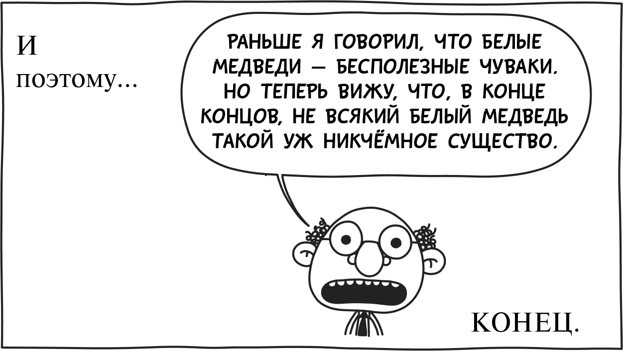 Ну вот, видали, какая мораль? Единственный минус, который я нашёл в своей книге, когда закончил её, – это что я забыл зарифмовать строчки. Но если издатели захотят ТАКОГО – что ж, нет проблем, только им придётся отвалить мне за это нехилую дополнительную сумму.