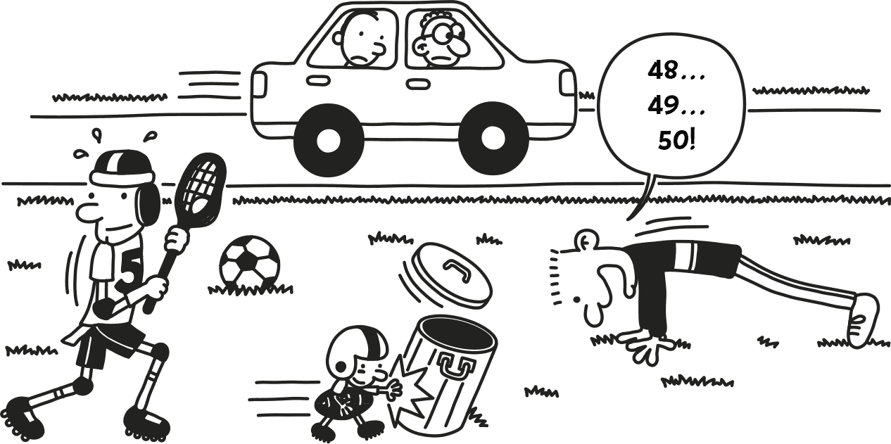 Вчера на большой перемене Альберт Сэнди рассказывал про какого-то парня из Китая или Таиланда, не помню, который прыгает вертикально на метр восемьдесят от земли. Нет, серьёзно! Говорят, типа, парень выкопал ямку в десять сантиметров глубиной, выпрыгнул из неё сто раз, на другой день удвоил глубину ямки, опять выпрыгнул сто раз и на пятый день таких тренировок скакал уже как кенгуру.