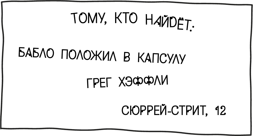 У меня была твёрдая надежда на то, что чувак, который найдёт капсулу и станет богатым, вернётся в прошлое, чтобы поблагодарить меня за труды.