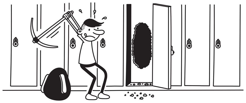 Дэнни решил на этом подзаработать и начал брать деньги за проход через его шкафчик. Это натолкнуло некоторых ребят на мысль придумать свои СОБСТВЕННЫЕ кратчайшие пути.