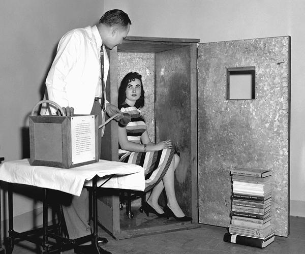 Каждую неделю на протяжении полугода Эбби возвращалась в Институт оргона. На некоторых приемах доктор Райх использовал оргоноскоп – прибор, по виду напоминавший медный телескоп. Он позволял рассмотреть течение оргонной энергии в организме, которая, по словам врача, была ярко-синей. На других сеансах Райх просил Эбби раздеться до нижнего белья и залезть в ящик, по размерам напоминавший телефонную будку. При этом от шеи девушки спускался резиновый шланг. Это устройство – оргонный аккумулятор, который усиливал оргонную энергию Эбби и помогал ей справиться с тревогой.