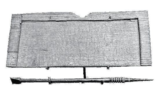 Стилус и дощечка для письма – старейшая из известных записей о коммерческой сделке в Лондонском сити. Оно датировано 8 января 57-го. Черный воск, который первоначально был на нем, исчез, но автор оставил на дереве следы, которые можно прочитать. Автор, Тибулл, вольноотпущенник Венуста, пишет, что он должен Гратусу, вольноотпущеннику Спурия, 105 динариев в обмен на товары. Выставлен в лондонском Митреуме.