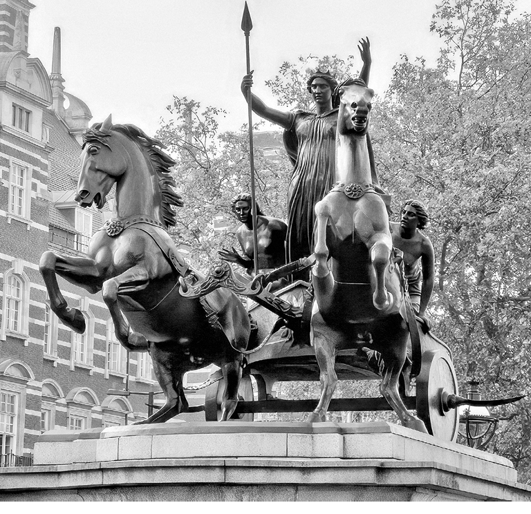 Но вообще-то интерес к Боудикке пробудился еще во второй половине ХVI века, в правление Елизаветы I, дочери Генриха VIII и несчастной Анны Болейн[20]. Энергичной Елизавете, которую следовало бы называть не «доброй королевой Бесс», а «сильной королевой Бесс», весьма импонировал образ древней британской воительницы. А то, что Боудикка выступала против римлян, приобрело особое значение после разрыва Генриха VIII с Римской католической церковью. Но после смерти Елизаветы английских Тюдоров сменили на троне шотландские Стюарты, которым Боудикка была чужда, и потому о ней снова забыли.