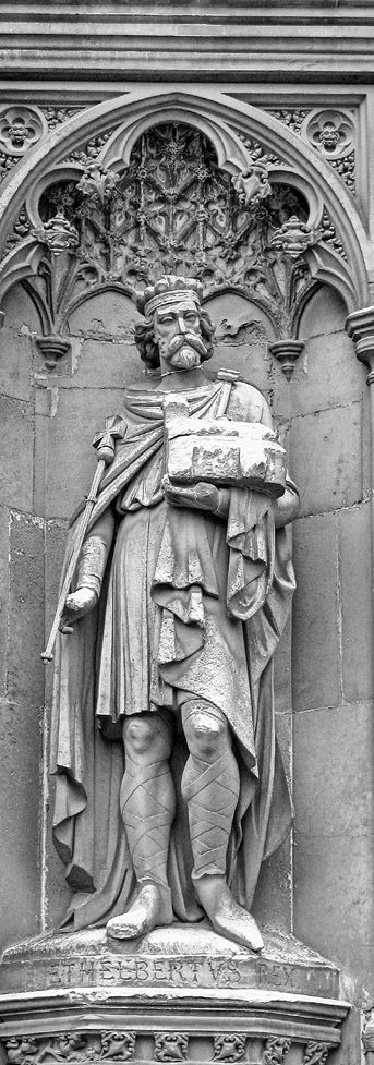 Король Этельберт Кентский известен тем, что дал своему народу свод законов, созданных на основе римского права. «В первую очередь он установил, какое возмещение должны платить те, кто украдет что-либо у церкви, у епископа или иного церковного служителя; так и все эти законы призваны защищать тех, чью проповедь и учение король принял»[30].