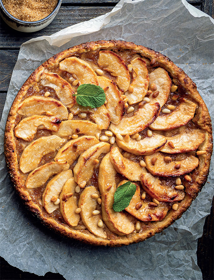 5. Большую часть яблок выложите на дно смазанной формы. Залейте тестом и украсьте верхнюю часть оставшимися яблоками.