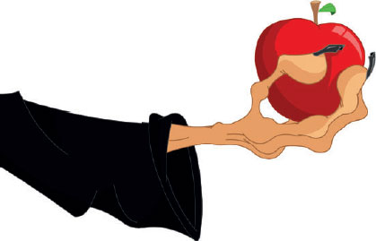 2. Воткните шпажку примерно до середины яблока, (следует убедиться, что яблоко держится крепко).