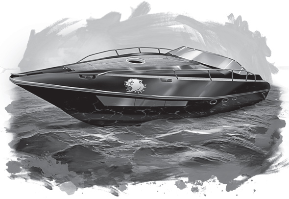 Там, бросив якорь внутри кораллового рифа, стояла блестящая чёрная лодка. Крупная и приземистая, спроектированная для больших скоростей. На корпусе виднелось изображение белой собаки – ее пасть была открыта, а острые зубы обнажены в жутком оскале.