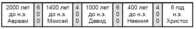 Авраам жил примерно за 2000 лет до Христа. Запомнить эту цифру просто, потому что мы с вами живем примерно через 2000 лет после Христа. Между Авраамом и Моисеем прошло примерно 600 лет, а это значит, что Моисей жил примерно за 1400 лет до Христа. Давид жил примерно через 400 лет после Моисея, то есть за 1000 лет до Христа. Неемию от Давида отделяло еще 600 лет, то есть ветхозаветная история завершилась примерно за 400 лет до Христа. Шкала получается простая и легко запоминающаяся: