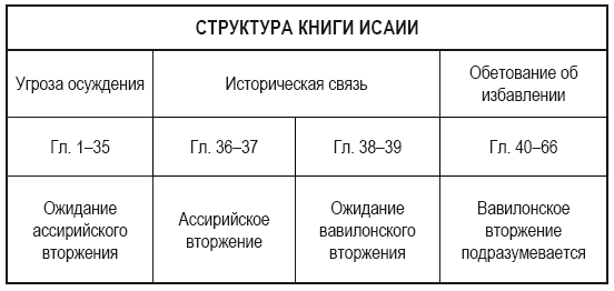 Хотя в книге Исаии больше глав, чем в книгах Иеремии или Иезекииля, по количеству слов она занимает третье место. Она содержит шестьдесят шесть глав, которые являются своего рода микрокосмом Библии. Первые тридцать девять глав, как и тридцать девять книг Ветхого Завета, в основном сосредоточены на осуждении. Последние двадцать семь глав, как и двадцать семь книг Нового Завета, в основном говорят об искуплении.