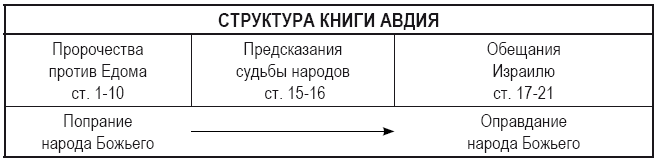 Послание Авдия можно назвать «Сказом о двух горных вершинах». В этом сказе гора Сион представляет собой народ Божий. Гора Исав – образ противников Божьего народа. То же противопоставление присутствует в терминах «дом Иакова» и «дом Исава». Для первых настоящее выглядит мрачным, а будущее – светлым. Что же касается противников Божьего народа, то у них вообще нет будущего.