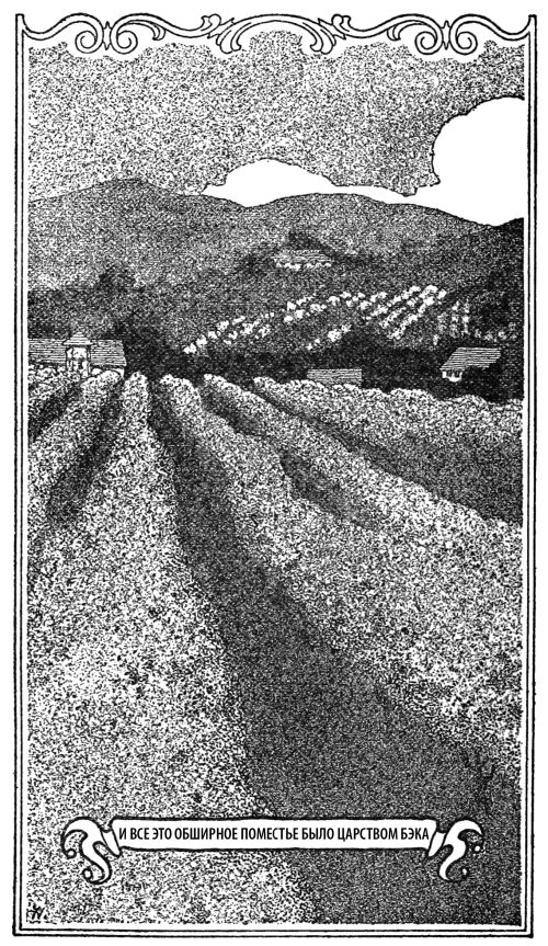 Бэк жил в большом доме, в солнечной долине Санта-Клара. Место это люди называли «усадьбой судьи Миллера». Дом стоял в стороне от дороги, полускрытый за деревьями, и сквозь ветви виднелась только веранда, просторная и тенистая, окружавшая дом со всех сторон. К дому вели посыпанные гравием дорожки, они вились по широким лужайкам под стройными тополями, ветви которых сплетались между со бой. Территория за домом была еще обширнее. Здесь находились большие конюшни, где хлопотала добрая дюжина конюхов и их подручных, тянулись ряды увитых диким виноградом домиков для прислуги и строго распланированная сеть всяких надворных построек, а за ними зеленели виноградники, пастбища, плодовые сады и ягодники. Была тут и насосная установка для артезианского колодца, и большой цементный плавательный бассейн, где сыновья судьи купались каждое утро, а в жаркую погоду и днем.