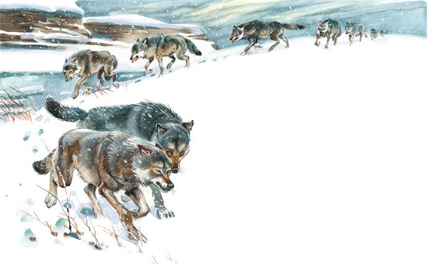 Во главе стаи бежал крупный серый волк, один из её вожаков. Он-то и направил стаю по следам волчицы, предостерегающе огрызаясь на более молодых своих собратьев и отгоняя их ударами клыков, когда они отваживались забегать вперёд. И это он прибавил ходу, завидев впереди волчицу, медленной рысцой бежавшую по снегу.