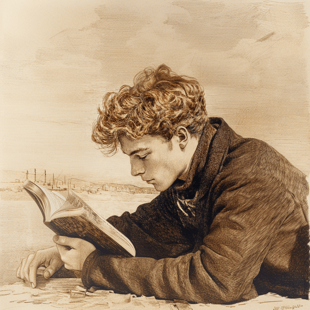 Единственным утешением была для Мартина поэзия: он с восторгом читал тех простых поэтов, каждая строчка которых была ему понятна. Он любил красоту, а здесь он находил ее в изобилии. Поэзия действовала на него так же сильно, как и музыка, и незаметным образом подготовляла его ум к будущей, более трудной работе. Страницы его памяти были пусты, и он без всякого усилия запоминал строфу за строфой, так что скоро мог уже вслух произносить целые стихотворения, наслаждаясь гармоническим звучанием оживших печатных строк. Однажды он случайно наткнулся на «Классические мифы» Гэйли и «Век сказки» Бельфинча. Словно луч яркого света прорезал вдруг мрак его невежества, и его еще больше потянуло к поэзии.