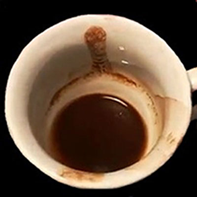 Чашечка должна простоять несколько минут, чтобы гуща несколько подсохла. После этого в чашечку можно уже заглянуть. И начать считывать образовавшиеся символы из кофейной гущи.