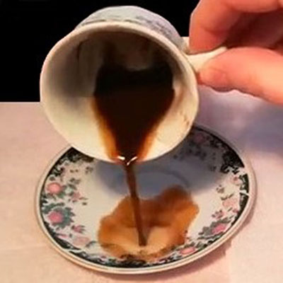 Чашечка ставится вверх дном в центр блюдца, прямо в эпицентр кофейной гущи.