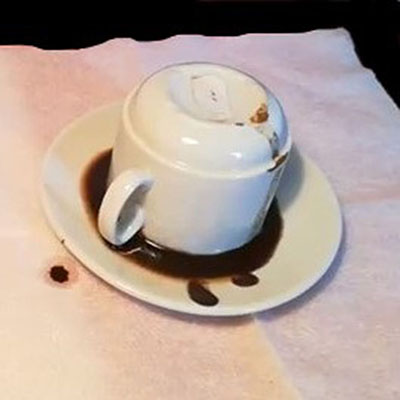 На блюдце кофейная гуща сливается определенным способом.