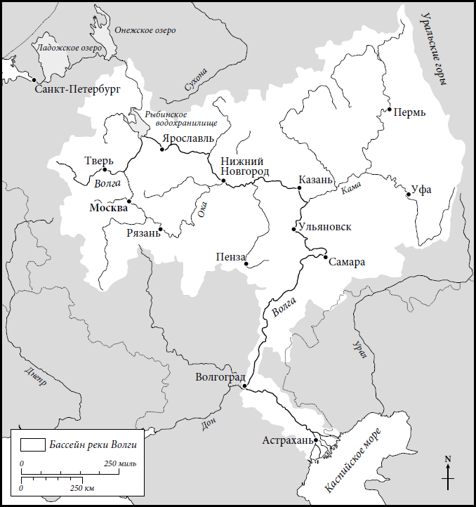 Бассейн Волги – крупнейший в Европе. Вместе с основными притоками (Окой, впадающей в Волгу в Нижнем Новгороде, и Камой – к югу от Казани) река обеспечивает водой и стоком самый населенный регион России к западу от Урала, включая Москву. Сама простота имени, данного реке различными народами, обитавшими на ее берегах, свидетельствует о том, что для них это Река – и не только Река. Слово «Волга» образовано от славянских слов со значением «влажность», «сырость»[15]. Тюркоязычные народы, жившие на ней, знали реку как Итиль (или Итель/Атиль; в современном татарском это Идел, а в современном чувашском – Атэл[16]), то есть «большая река». Мордовское название Рав происходит от скифского Ра, то есть «влага»[17].