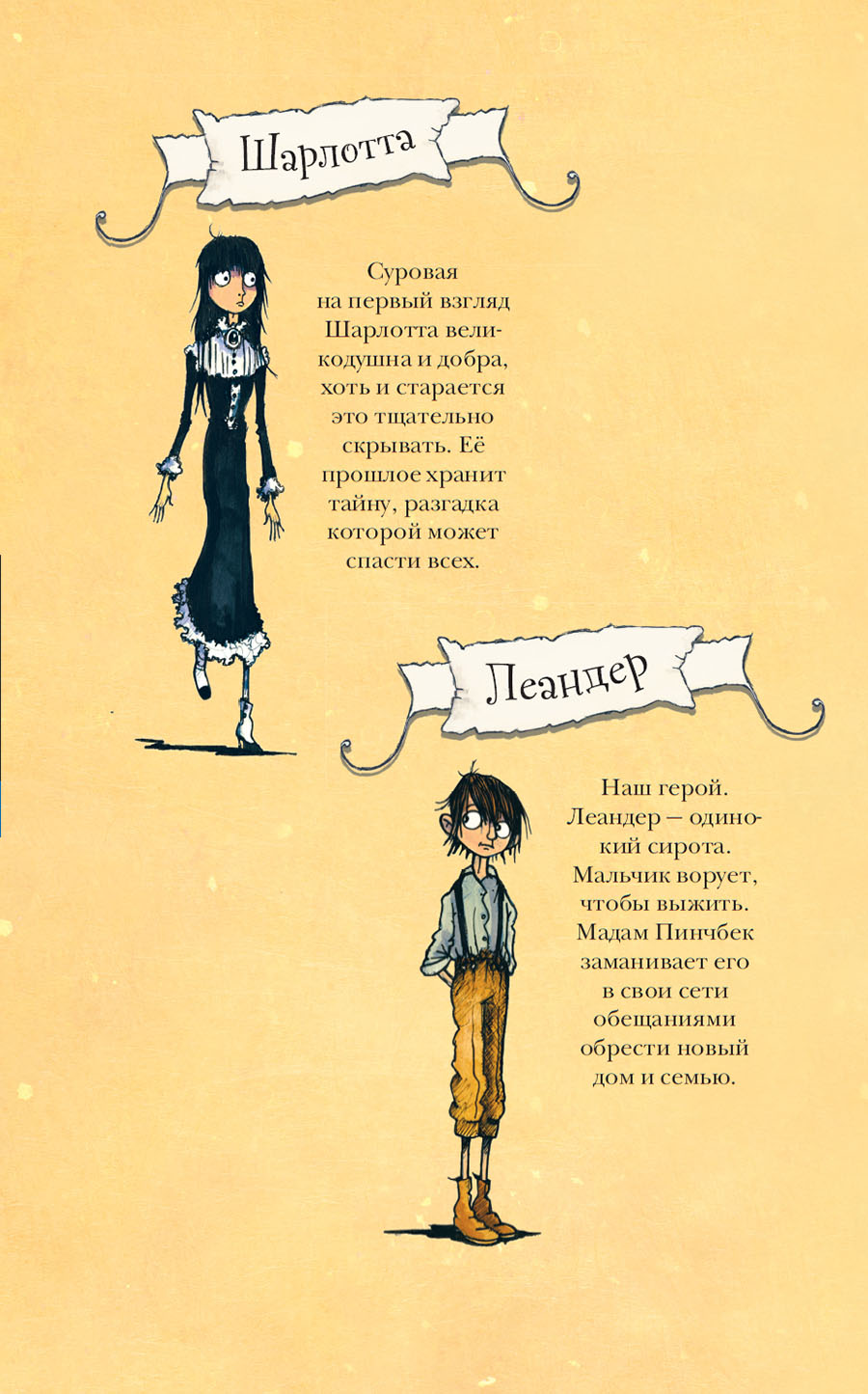 Ну уж нет! Леандер как можно тише прополз под днищем экипажа и выбрался на противоположную сторону – только чтобы обнаружить странную даму, поджидавшую его лицом к лицу. Она была высокой, так что грозно нависала над мальчиком. Чёрные волосы её были подняты в высокую причёску и увенчаны ярко-зелёной шляпкой. Хотя её без труда можно было назвать красивой, её окружала странная атмосфера холода – не теплее, чем кусачий ноябрьский ветер.