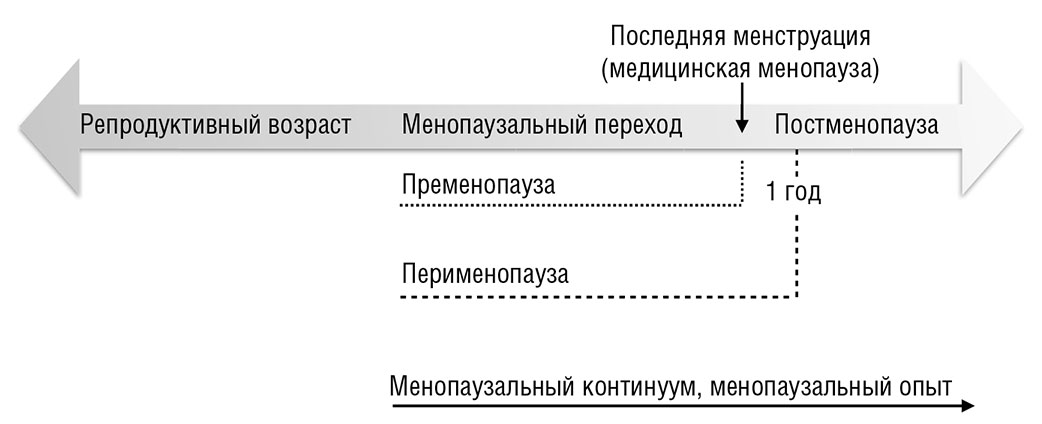 Говоря медицинским языком, менопаузальный переход – это время, предшествующее последней менструации, последняя менструация – это маркер менопаузы, а все, что следует за последней менструацией, – это постменопауза (см. схему 1). Поскольку невозможно заранее узнать, какая менструация станет последней, менопауза будет официально подтверждена ретроспективно, через 12 месяцев после последних месячных.