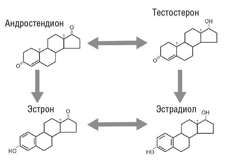 Схема 6: Производство эстрадиола, эстрона и тестостерона
