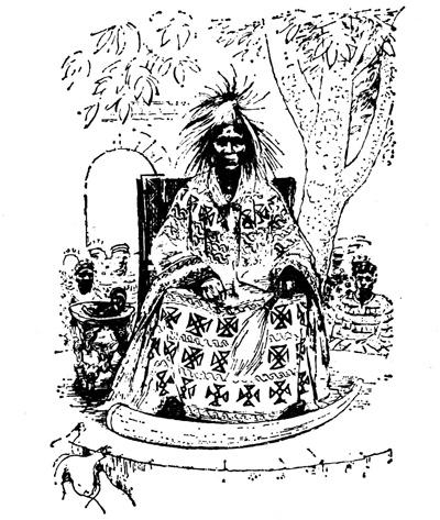 Все они были разряжены в длинные, просторные одежды великолепных ярких цветов (одежды эти шелестели и сверкали на ходу), а на головах красовались маленькие, тесно облегавшие череп круглые шапочки, расшитые сложным ярким узором, какие я видел уже не раз. Некоторые несли в руках жезлы из какого-то темно-коричневого дерева, покрытые удивительно тонкой ажурной резьбой. Все они были уже пожилые или даже старые люди, явно очень гордились своим высоким положением в обществе, и каждый здоровался со мной весьма торжественно, тряс мне руку и несколько раз выразительно повторял: «Приветствую». Таких аристократов было много, и они придавали всей церемонии удивительную окраску. В пять часов мне пора было возвращаться домой пить чай; по пути я остановился на верхней площадке лестницы и посмотрел вниз, на огромный двор: он был набит битком, так что даже земля лишь изредка мелькала рыжими пятнами там, где веселые танцоры в своих неиссякаемых коленцах отпрыгивали в сторону. В толпе яркими пятнами мелькали цветастые одежды старейшин – будто по клумбе чернозема разбросаны пестрые цветы.
