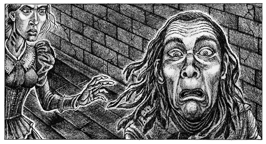 Я не смогу это забыть даже через сотню лет! Снаружи, проносясь мимо окон, завывал ветер, пока редкие вспышки молнии освещали старую усадьбу Грэйндж. В доме же не было ни звука, кроме скрипа двери и тихого стука падающих капель крови. Затем Том, пошатываясь, вернулся в комнату и крепко стиснул мою руку.