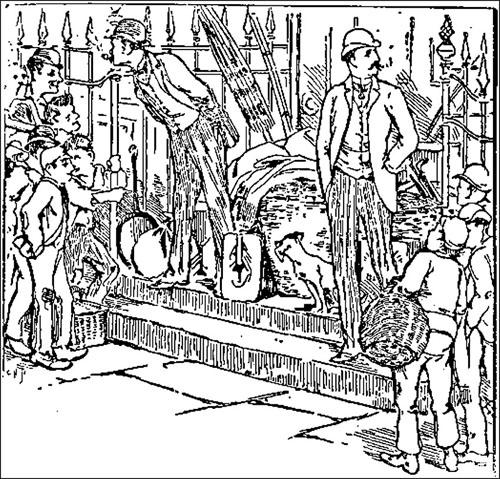 The grocer’s boy came across, and took up a position on the other side of the step. Then the young gentleman from the boot-shop stopped, and joined Biggs’s boy; while the empty-can superintendent from “The Blue Posts” took up an independent position on the curb.