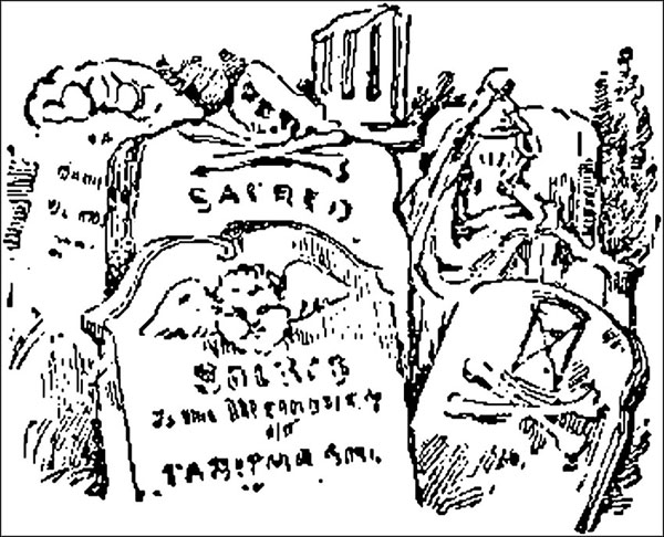 Harris, however, revels in tombs, and graves, and epitaphs, and monumental inscriptions, and the thought of not seeing Mrs. Thomas’s grave made him crazy. He said he had looked forward to seeing Mrs. Thomas’s grave from the first moment that the trip was proposed – said he wouldn’t have joined if it hadn’t been for the idea of seeing Mrs. Thomas’s tomb.
