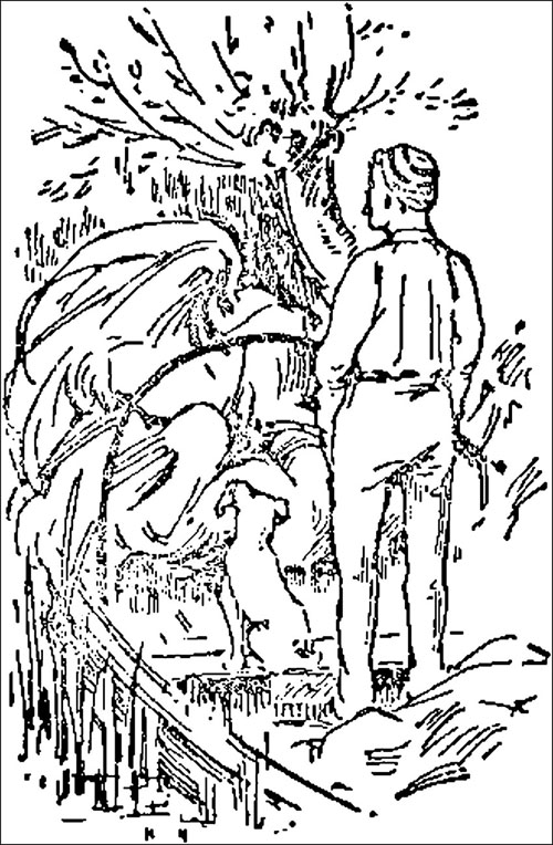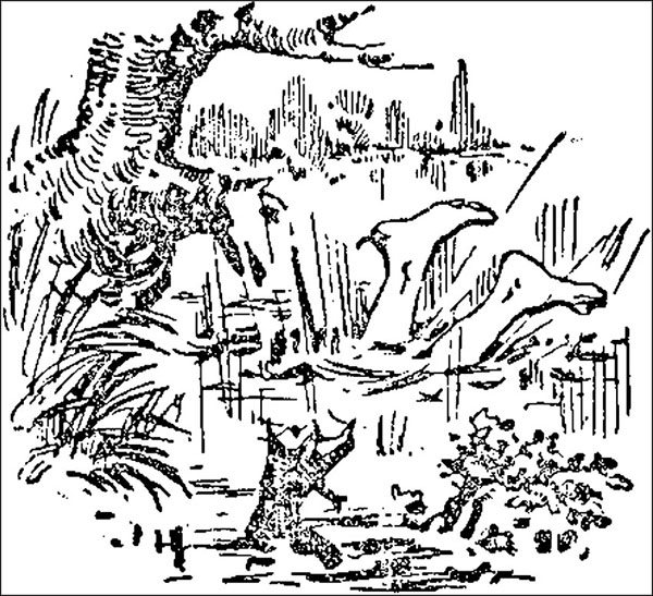 I did not altogether like to give in, though I did not relish the plunge. There might be snags about, or weeds, I thought. I meant to compromise matters by going down to the edge and just throwing the water over myself; so I took a towel and crept out on the bank and wormed my way along on to the branch of a tree that dipped down into the water.