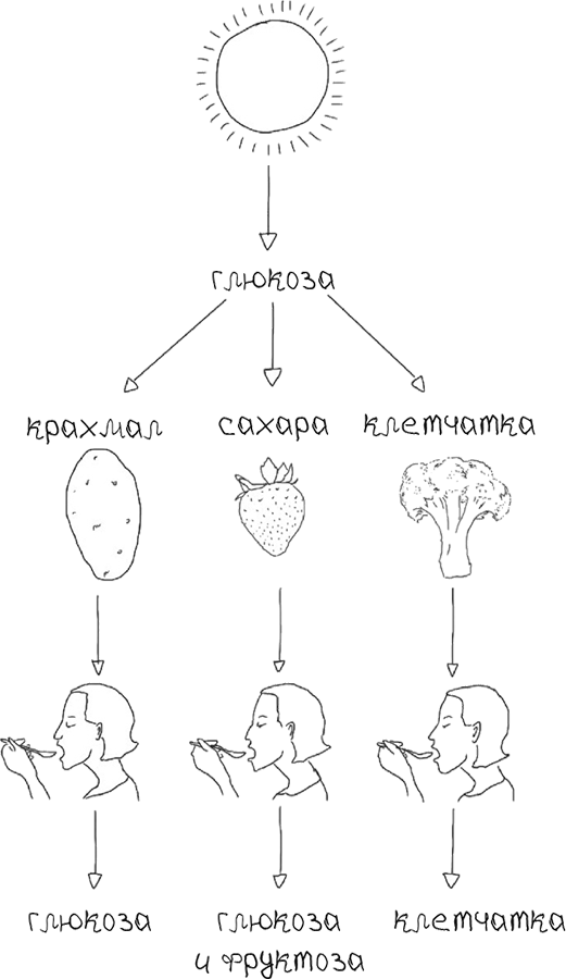 Крахмал, клетчатка, фруктоза и сахароза являются разными формами глюкозы и существуют благодаря фотосинтезу. Этот изобретенный Джерри элегантный процесс проложил путь для всех прочих форм жизни на нашей планете.