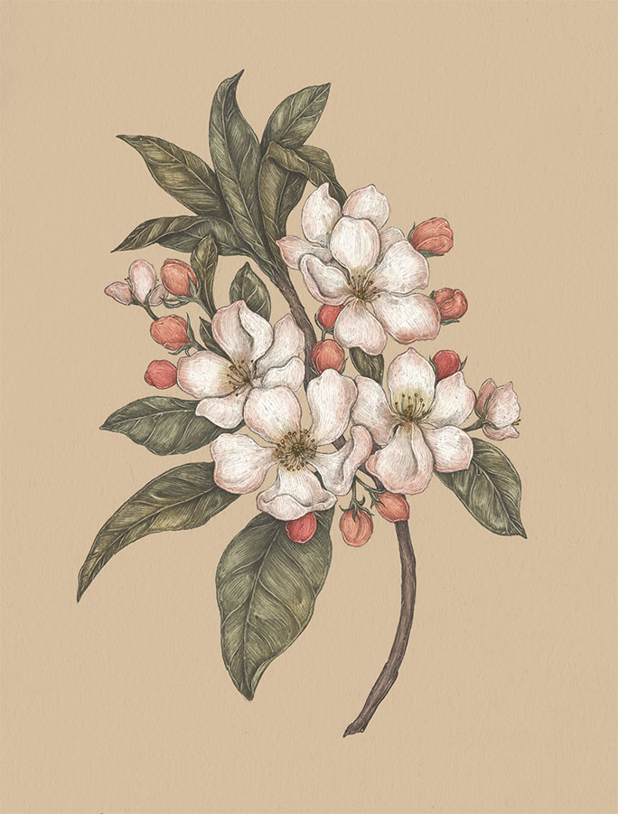 Значение яблоневого цвета восходит к преданию о яблоке раздора. Богиня раздора Эрида подбросила золотое яблоко на стол во время свадьбы, на которую ее забыли пригласить. На плоде было написано «Прекраснейшей». Гера, Афина и Афродита стали претендовать на него. Зевс повелел Парису решить, кому из трех богинь отдать яблоко. Тот выбрал Афродиту, так как она пообещала ему взамен любовь самой красивой женщины в мире – Елены из Спарты. Но Елена была замужем за царем Менелаем. Так началась Троянская война.
