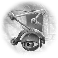 Жужжание стало громче. Из белёсого тумана за окошком высунулась длинная механическая рука с огромным, с голову величиной, глазом на конце. Глаз поморгал, окинул внимательным взглядом кабинку и пассажиров.