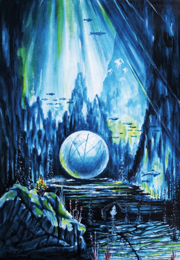 Я уткнулся взглядом в верхнюю часть прозрачного потолка, и мне показалось, что весь свод был из обычной воды. Но меня удивило то, что она двигалась, переливаясь небольшими волнами, – и всё это происходило на потолке, надо мной.