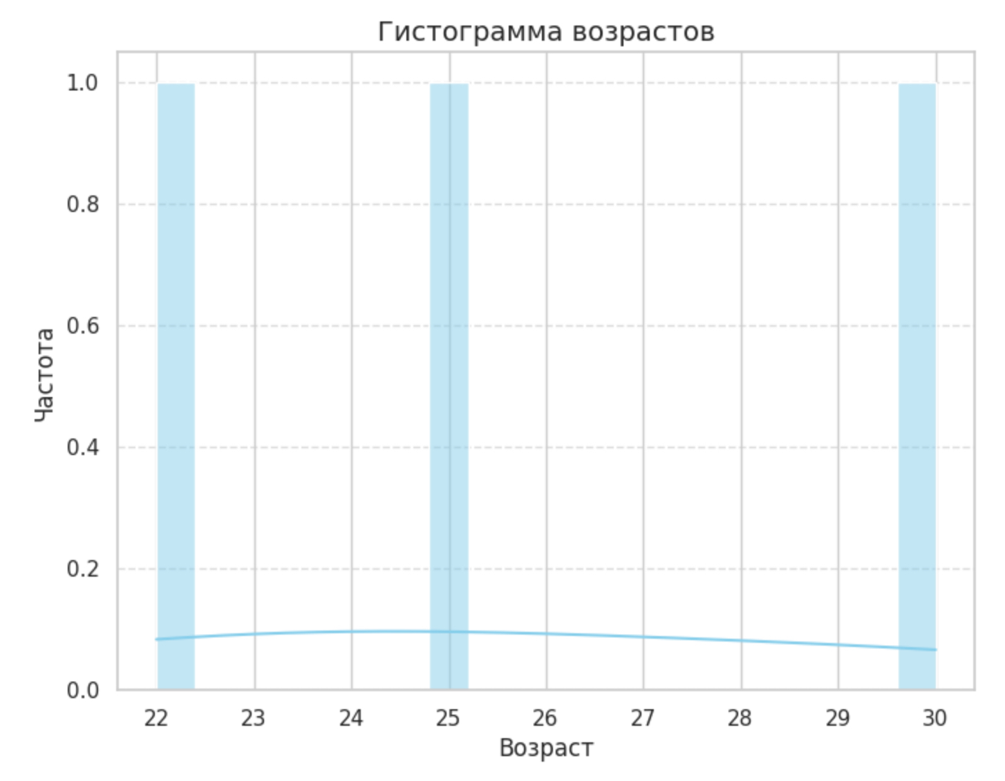 'Возраст': [25, 30, 22],