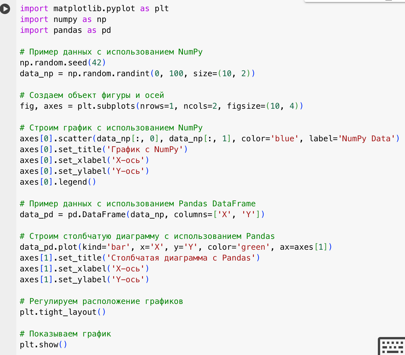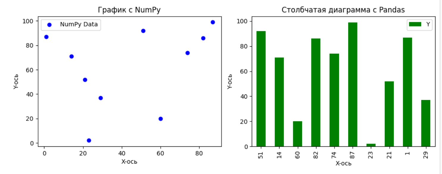 Этот пример иллюстрирует, как легко можно интегрировать Matplotlib с NumPy и Pandas, что делает визуализацию данных из этих библиотек удобной и эффективной.