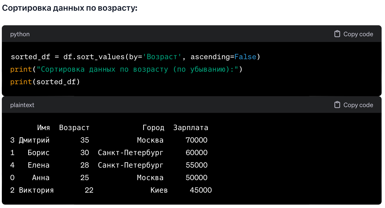 DataFrame можно создать из различных источников данных, таких как списки, словари, массивы NumPy, CSV-файлы и многие другие. Рассмотрим несколько примеров.