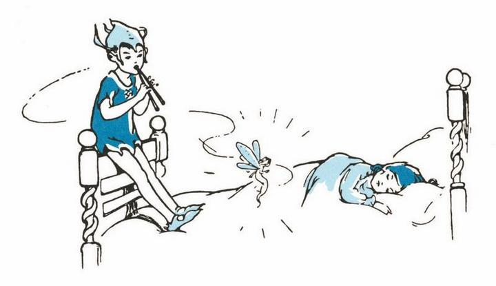 – Он никак не привыкнет вытирать ноги, – вздохнула Венди, сама будучи очень аккуратной, и, как само собой разумеющееся, поведала маме, что Питер иногда по ночам приходит в детскую, садится в изножье её кровати и играет на дудочке.