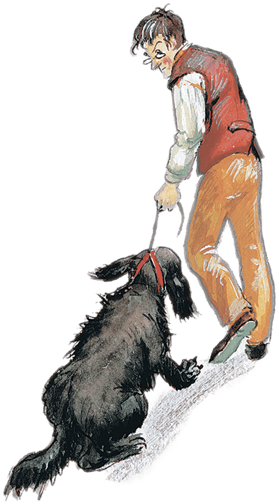 Нэна вильнула хвостом, подбежала к своей миске и начала лакать. Потом она поглядела на него сердито. Глаза её стали влажными. Она обиженно уползла к себе в будку.