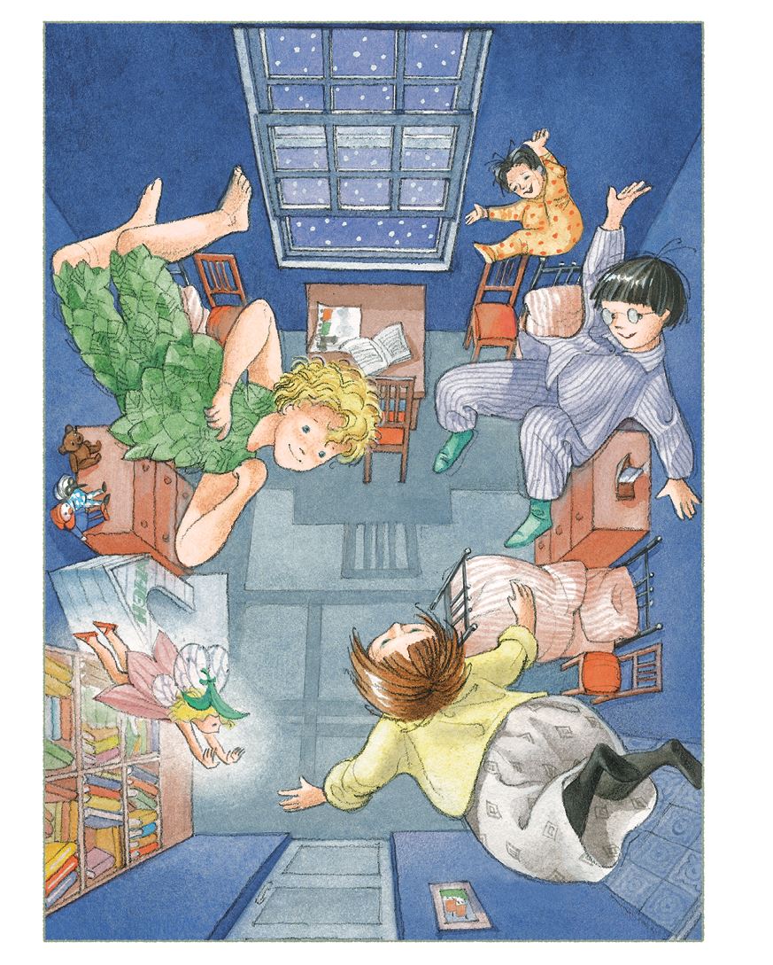 Казалось, что летать совсем не трудно, и они попробовали, подпрыгивая сначала на полу, а потом на кроватях. Но у них ничего не выходило. Они падали.
