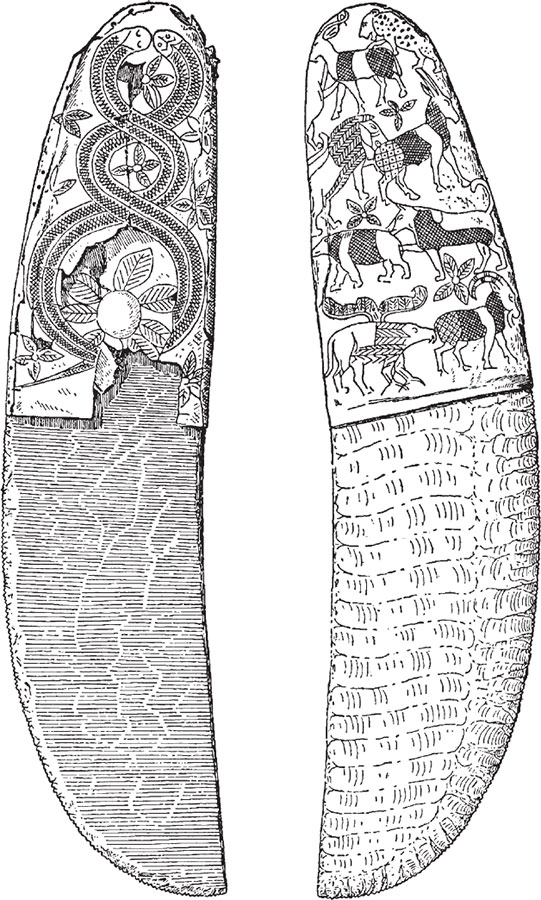 Кремневый нож додинастической эпохи с рукояткой из листового золота, на котором отчеканены рисунки
