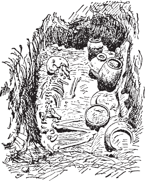 Остатки всего этого великолепия, среди которого жили древнейшие фараоны, были извлечены на свет из гробниц в Абидосе Флиндерсом Питри, положившим на это много горячего и добросовестного труда. Абидосские гробницы представляют собою результат естественного развития простейших могил, в которых додинастические египтяне хоронили своих мертвецов. Склеп стал теперь больше и лучше сделан и принял четырехугольную форму. Он выложен изнутри кирпичом и часто имеет еще вторую обшивку из дерева. Одновременно с этим окружающие сосуды с едой и питьем были заменены рядом небольших покоев, расположенных вокруг среднего помещения или собственно склепа. В этом последнем, без сомнения, лежало тело, вероятно, в деревянном гробу. Но гробницы столько раз разграблялись и опустошались, что в них ни разу не было найдено тела. Сверху гробница была покрыта тяжелыми стволами и балками, на которые, вероятно, насыпалась куча песку. С восточной стороны ставились две высоких и узких плиты с именем царя. Кирпичная лестница спускалась с одной стороны в средний покой. Туалетные принадлежности царя, богатая коллекция чаш, кувшинов и сосудов, металлических ваз и тазов, его личные украшения и все, что требовалось для его придворного штата в потустороннем мире, опускалось вместе с телом в гробницу, в то время как в меньших смежных покоях помещались обильные запасы пищи и вина в огромных глиняных сосудах, закупоренных большими втулками из нильского ила, смешанного с соломой. На этих втулках, в то время когда они были еще сырыми, было оттиснуто имя царя или название поместья или виноградника, откуда происходило вино или продукты. Чтобы навсегда обеспечить припасами потребности стола умершего царя, а также его домашних и приверженцев, могилы которых в числе ста или двухсот были расположены вокруг его собственной, последняя обеспечивалась постоянным поступлением припасов и вина из некоторых царских поместий. Таким образом, после смерти царь был окружен теми же лицами, которые сопровождали его при жизни: его жены, его телохранители и, наконец, даже карлик, танцы которого развлекали его в свободные часы, и его любимая собака, – все покоятся вблизи своего господина, чтобы он мог вести в потустороннем мире ту же пышную жизнь, как и на земле. Вследствие этого высшие классы стали издавна заботиться о надлежащем сохранении тела умершего для потусторонней жизни.