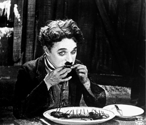Наш любимый фильм Чаплина – «Золотая лихорадка» (1925). Это должна была быть эпическая комедия, история о старателе, ищущем золото и любовь в горах Клондайка. В фильме есть сцена, ставшая частью культурного наследия, момент, который многим будет знаком, даже если они не видели фильм целиком. Классические фильмы изобилуют такими моментами, которые затем становятся культурными ориентирами, выходящими за рамки жанра кино или даже зрительской аудитории фильма, в котором этот момент возникает. «Золотая лихорадка» представляет, пожалуй, самый ранний из таких моментов.