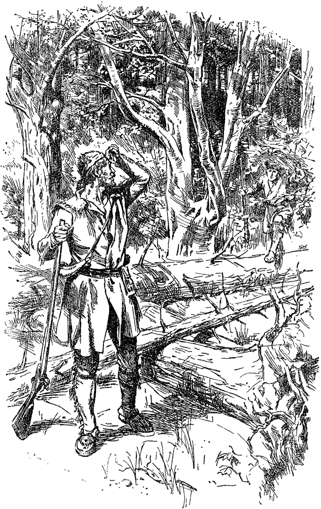 Каковы бы ни были перемены, производимые человеком, вечный круговорот времен года остается неизменным. Лето и зима, пора сева и пора жатвы следуют друг за другом в установленном порядке с изумительной правильностью, предоставляя человеку возможность направить высокие силы своего всеобъемлющего духа на познание вечных законов, которыми управляется это бесконечное однообразие. Столетиями летнее солнце обогревало своими лучами вершины благородных дубов и сосен и посылало свое тепло даже скрывающимся в земле упорным корням, прежде чем послышались голоса, перекликавшиеся в чаще леса, лиственный покров которого купался в ярком блеске безоблачного июньского дня, в то время как стволы деревьев в сумрачном величии высились в окутывавшей их тени. Голоса звучали неодинаково и, очевидно, принадлежали двум мужчинам, которые сбились с пути и пытались найти потерявшуюся тропинку. Наконец торжествующее восклицание возвестило об успехе поисков, и затем какой-то человек гигантского роста выбрался из лабиринта мелких болот на поляну, образовавшуюся, видимо, частично от опустошений, произведенных ветром, и частично под действием огня. Отсюда хорошо было видно небо. Сама поляна, сплошь заваленная стволами деревьев, раскинулась на склоне одного из тех высоких холмов или небольших гор, которыми пересечена почти вся эта местность.