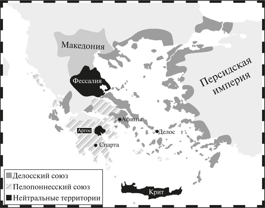 После поражения персов городам-государствам оставалось искать защиты либо у Афин, либо у Спарты. По принципу дорийского или ионийского племенного родства начали формироваться два противоборствующих блока. Все население Пелопоннеса, кроме аргосцев, тяготело к Спарте. Жители земель севернее перешейка, кроме фиванцев и почти всех островитян, тяготели к Афинам.