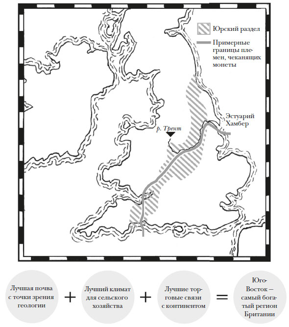 Они потерпели неудачу. В регионе, известном ныне как Шотландия, жители сопротивлялись так успешно, что римлянам пришлось откатиться за оборонительные валы, которые можно увидеть и сегодня. Современный Уэльс и север Англии всегда управлялись и облагались налогами силой, размещенной на наконечнике копья. Римская цивилизация в Британии, по сути, размещалась только на юге Англии. Подлинной романизации подверглись лишь районы вдоль крупных дорог, которые вели к северному бастиону, Йорку, и соединяли важнейшие гарнизоны – Карлеон и Честер (контуры этой последней дороги практически соответствуют современной западной границе Англии). Таким образом римляне, до прихода которых жители Юго-Востока и так отличались от соседей, сделали эти различия еще более явственными.