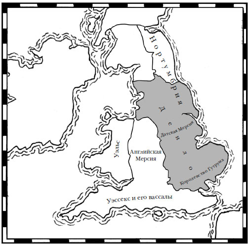 К моменту своей смерти в 899 г. Альфред создал англоязычную версию самой передовой политической цивилизации в Европе и стал cyning ofer eall Ongelcyn butan ðæm dæle þe under Dena onwalde wæs («королем всей Англии, кроме той части, где правили даны»). Правда, часть эта была довольно велика. Различия между Севером и Югом, заметные еще при Беде, значительно увеличились после прихода викингов, а также под их управлением. Культурный Север в то время достигал столь южных областей, как долина Темзы, определенно включая в себя и Восточную Англию. Английские топонимы до сих пор помогают определить политические границы на момент смерти Альфреда.